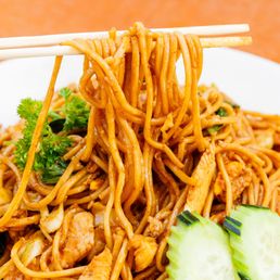 Tertawa itu paling riang di tempat makanan tersedia. / "Laughter is brightest in the place where the food is." It has been many decades since a former culinary arts colleague from Malaysia shared this Indonesian quote before inviting my husband and me to his family home in Kuala Lumpur. My colleague often frequented our home while introducing many of his homeland recipes to my family. He opened our tastebuds to the myriad of spices, aromatics, and textures of many Southeast Asian cuisines that Honolulu didn't commercially have. So, during a recent Southeast Asian cruise and a visit to Singapore, our tastebuds were excited by the exotic yet familiar flavors I remember my former colleague for. In addition to having our tastebuds fired up for Indonesian food from our cruise, I remembered reading a review from fellow Yelp Friend Arshad H and bookmarking Simpang Asia last year. So, we made it a point to try this restaurant. We were impressed by the reservation booking process but had a problem (constant busy signal) contacting them to inform them of a time change in our plans. However, we sorted it out when our party arrived at the restaurant since we arrived almost two hours before our confirmed reservation. The outside temperature was a sizzling 97°F, so we first welcomed the cool air conditioning. However, after placing our food order, we noticed cold air blasting, but we shrugged it off as our friendly server delivered and described our delicious food. But that's when my former colleague's Indonesian quote popped into my head, and I couldn't stop laughing, which my husband and brother-in-law caught like an infectious flu. During the meal, we started shivering while laughing to keep our bodies warm. FOOD: -Chicken Sate: sate or satay originated in Java, Indonesia, and is a dish of seasoned, skewered, and grilled meat served with peanut sauce. The skewered and grilled chicken was tender, juicy and well-flavored. Unlike Thai satay, Indonesian peanut sauce is less sweet because it draws its umami from kecap manis (thick, sweet soy sauce) instead of coconut milk, which my husband and brother-in-law prefer. 4/$14.95 -Risoles: risoles are Indonesian rissoles (flattened cakes of chopped and seasoned meat, fish or vegetables that is breaded with breadcrumbs and deep fried). Simpang Asia's version is a creamy chicken filling wrapped in a crepe, breaded, and deep fried. The risoles were served with a slightly spicy sambal mayonnaise. This appetizer resembled chicken pot pie hand pies. 2/$8.50 -Beef Rendang: slow-cooked beef steak curry with bold coconut curry flavor. I learned from my colleague the difference between authentic Indonesian and Malaysian rendang beef: how the rendang is cooked and the addition of kerisik (toasted coconut butter). I was skeptical of ordering this entree since my husband and brother-in-law don't seek out coconut; however, they found Simpang Asia's rendang very flavorful and its slow-cooked beef very tender. $27.95 -Nasi Goreng (Fried Rice) with Chicken: Although Indonesians commonly eat nasi goreng for breakfast, nasi goreng can be served as either a primary or side dish. My carbs-loving dining mates chose this tasty fried rice dish with the beef rendang entree. Being Asian, I wondered if belacan (shrimp paste) would be one of the ingredients, but unfortunately, I didn't taste it. However, I tasted the sweet savoriness of kecap manis. $14.95 -Mie Tek Tek: I had only heard about Mie Tek Tek from my former colleague, and I was excited to see this vintage street food on the menu. This fried egg noodle (mie/mee) with eggs, cabbage, chicken, and Chinese cabbage dish gets its name from the wok stir-frying sound (tek tek) from street food vendors. Its signature sweet, savory, and sticky kecap manis sauce enhances and pulls all of the ingredients together $14.95 If we hadn't shivered from the cold air-conditioning blasts, we would have ordered their sole dessert item (Martabak Manis), but we quickly exited the clean, colorful, and Halal restaurant. Ah, perhaps next time should we return, we'll bring or wear light sweaters or jackets and stay to order dessert.